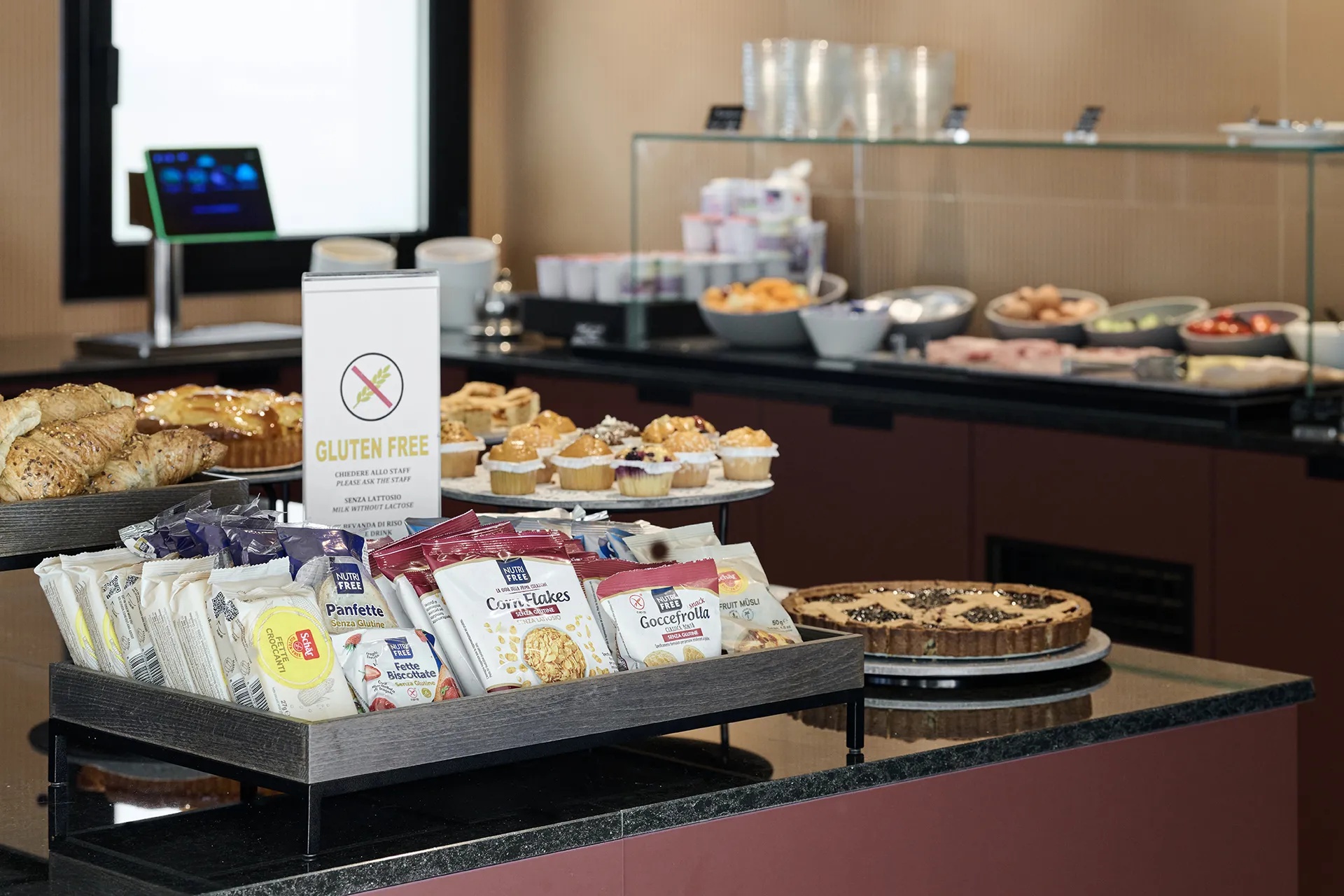 In addition to the classic American buffet you will find a corner with gluten-free products for celiacs, vegan, soy, wholemeal and lactose-free.